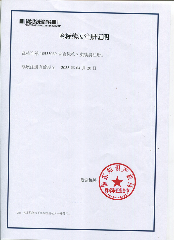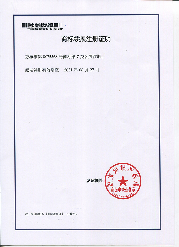 下列各式商標為本公司于大陸取得之商標注冊,僅授權太倉市塑寶環保機械及增城市升展機械公司使用,其余非經我司書面許可而濫用者,本公司將采取法律行動,追索侵權之損害賠償。